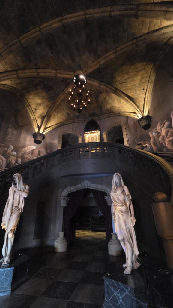 It’s worth noting that this land isn’t just about scares it’s truly about the atmosphere. The best way I can explain it is that it feels cinematic, almost like walking through a living horror film set.