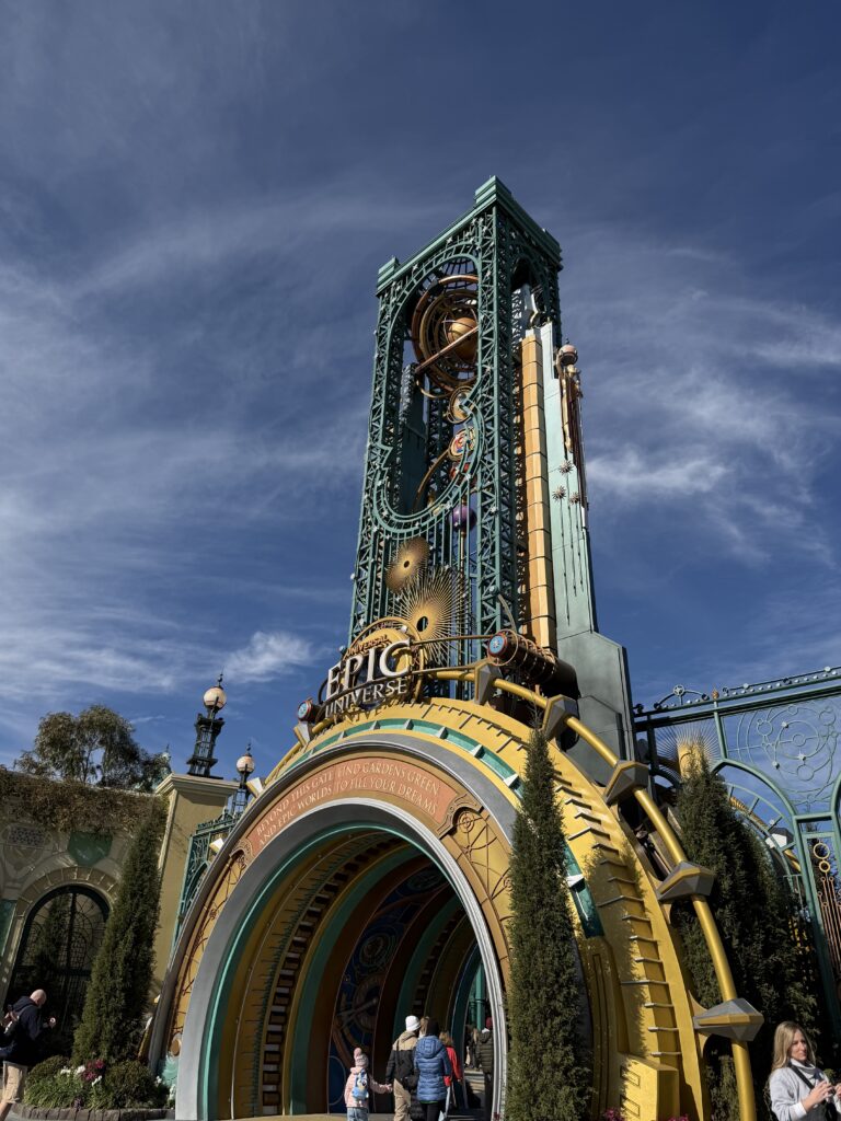 From the moment we walked through the entrance portal, it became clear that Epic Universe is built around the idea of fully immersive lands connected through a central hub called “Celestial Park.” Instead of gradually transitioning between themed areas, each land feels like stepping into an entirely different world.