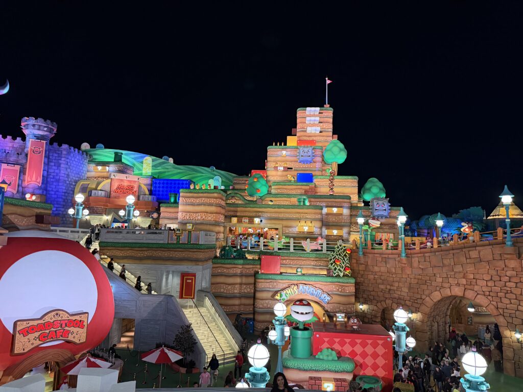 Walking into Super Nintendo World feels like stepping into a living video game. Bright colors, kinetic energy, and familiar characters are everywhere. The attention to detail is remarkable! From the moving elements in the scenery to the interactive features that let you engage with the environment.