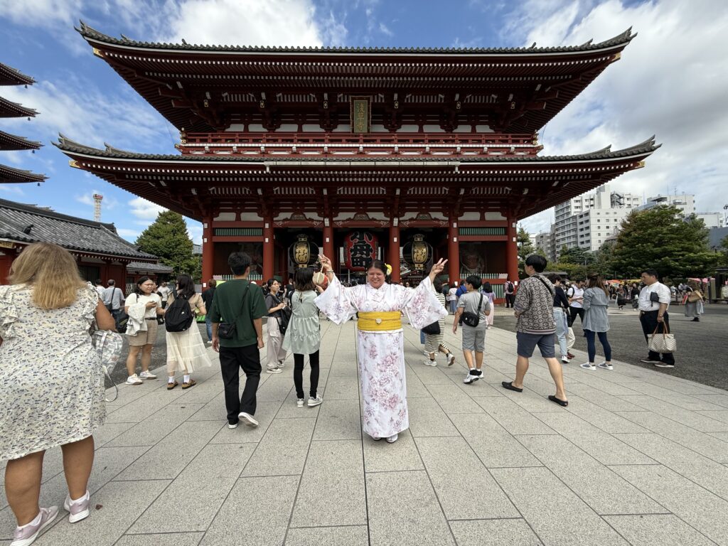 Just a short walk away from Senso-Ji Temple is a nearby Kimono rental storefront called Yae. It was about $50 for an all day kimono rental plus hairdo. These make great photos at the temple! Men outfits are also available.
